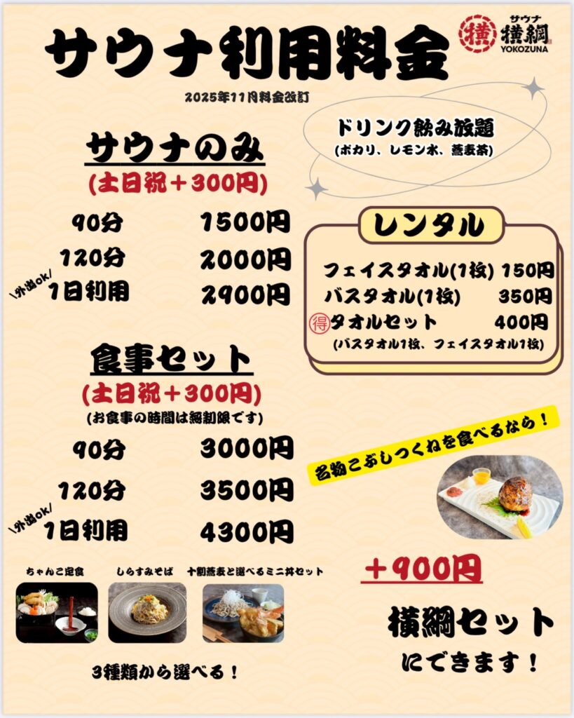 11月1日より、サウナの利用料金が変更になります。