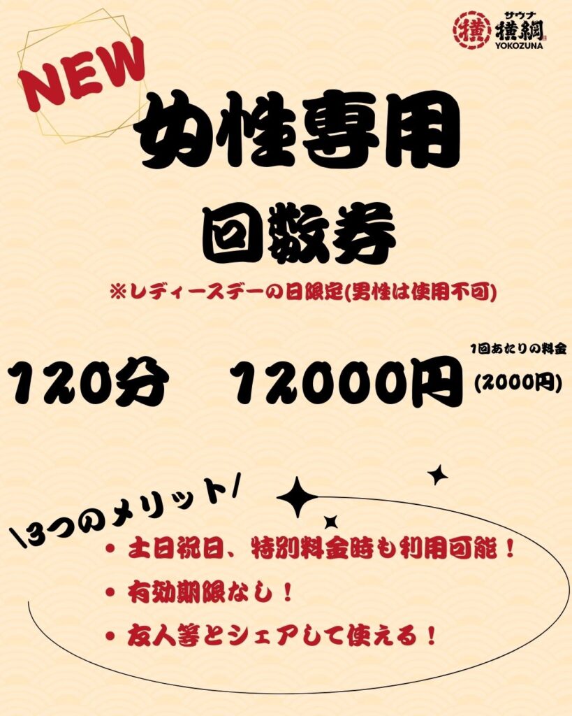 レディースデーで使うことができる女性専用の、回数券がでました!(男性は使用不可)