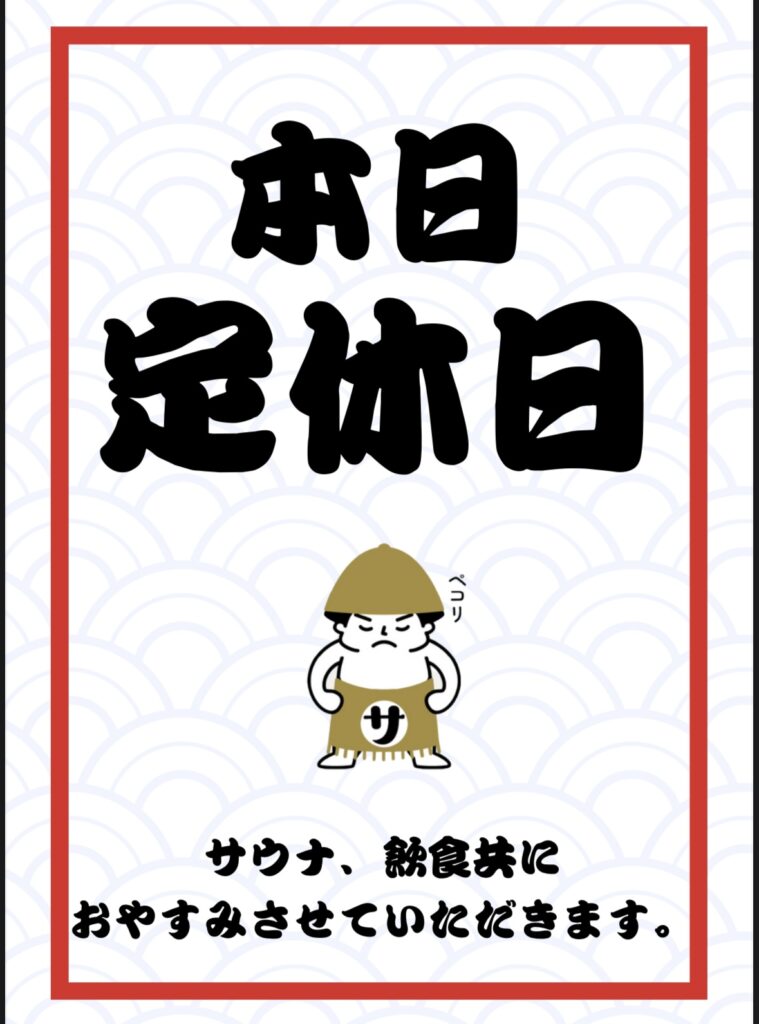 ⚠️⚠️⚠️⚠️本日、サウナ横綱は定休日となります⚠️⚠️⚠️⚠️